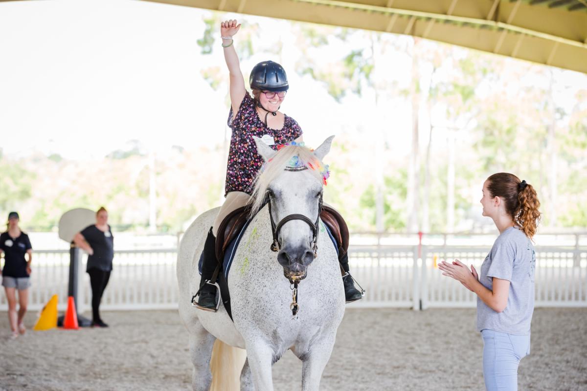 Adaptive Riding at Vinceremos builds each rider's equestrian skills, core strength, coordination and balance. Additionally, communication, socialization and responsibility are key aspects of the program. Each rider's objectives are set based on their indivual goals. The program is supported by skilled instructors and a team of volunteers. Reaching a goal, meeting a new milestone or winning a ribbon is a joyous occasion for everyone at Vinceremos. We celebrate every victory!